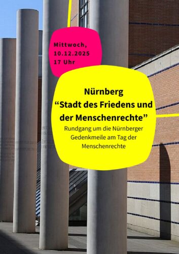Seid mit dabei, wenn wir gemeinsam mit Geschichte für alle e.V. am Tag der Menschenrechte, am 10. Dezember, einen Rundgang entlang der Nürnberger Gedenkmeile machen.